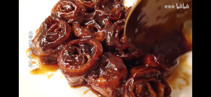 视频没有给出整盘镜头,没办法。色香味形器意养,单从最后摆上的这个红色就输了,太突兀 这几个颜色搭配的就很柔和 其实个人更爱吃京鲁菜做法更软烂的九转大肠 颜色亮度比上面的好,并且器也好 不过我也相信,隋波在中餐的广度和整体深度上远胜陈宗明,从他把各地探店时遇到的菜品复刻成功就能看得出来。
