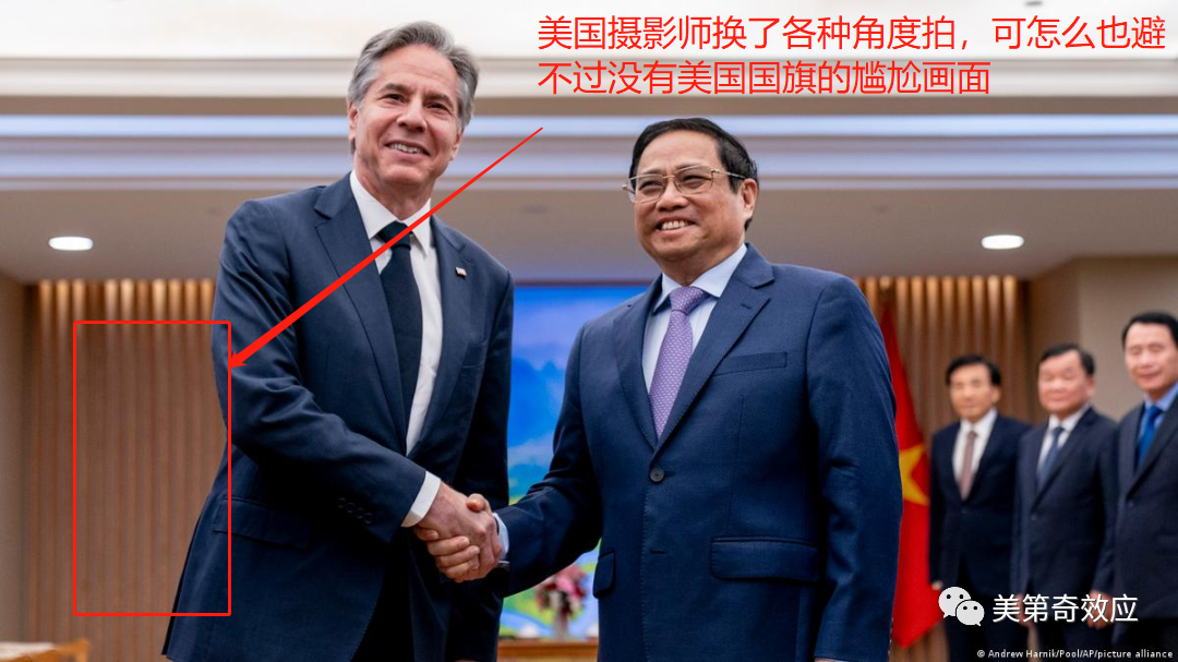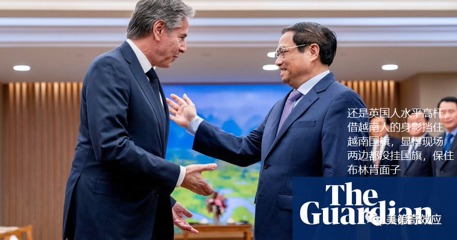 水平最高的还是英国卫报,人家直接用范明政的身体挡住了越南国旗,既然越南也没放国旗,那没有星条旗也不算奇怪了,算是保全了布林肯的一点面子。