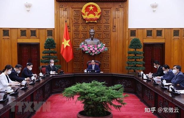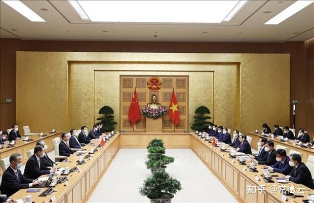 2021年9月11日下午,越南政府总理范明政在政府所驻地会见了正在对越南进行正式访问并共同主持召开越中双边合作指导委员会第十三次会议的中国国务委员、外交部长王毅。 当日会晤场景 2021年8月24日在河内,越南政府总理范明政会见中国驻越大使熊波。 2023年2月8日上午,越南政府副总理、越中双边合作指导委员会越方主席陈流光在政府总部会见了中国驻越特命全权大使熊波。 2021年8月17日下午,越共中央委员、中央军委委员、国防部副部长黄春战上将在国防部总部会见了中国驻越南大使熊波。 我粗略浏览了一下范总理在2023年1月以来的行程报道,他很喜欢在这个厅里会见外国来宾,包括外长和大使、外资公司的经理、还有中国云南和广西的省委书记,全都只有越南国旗。