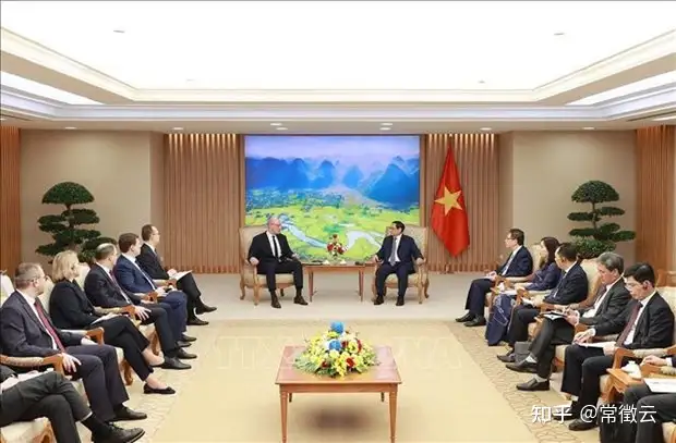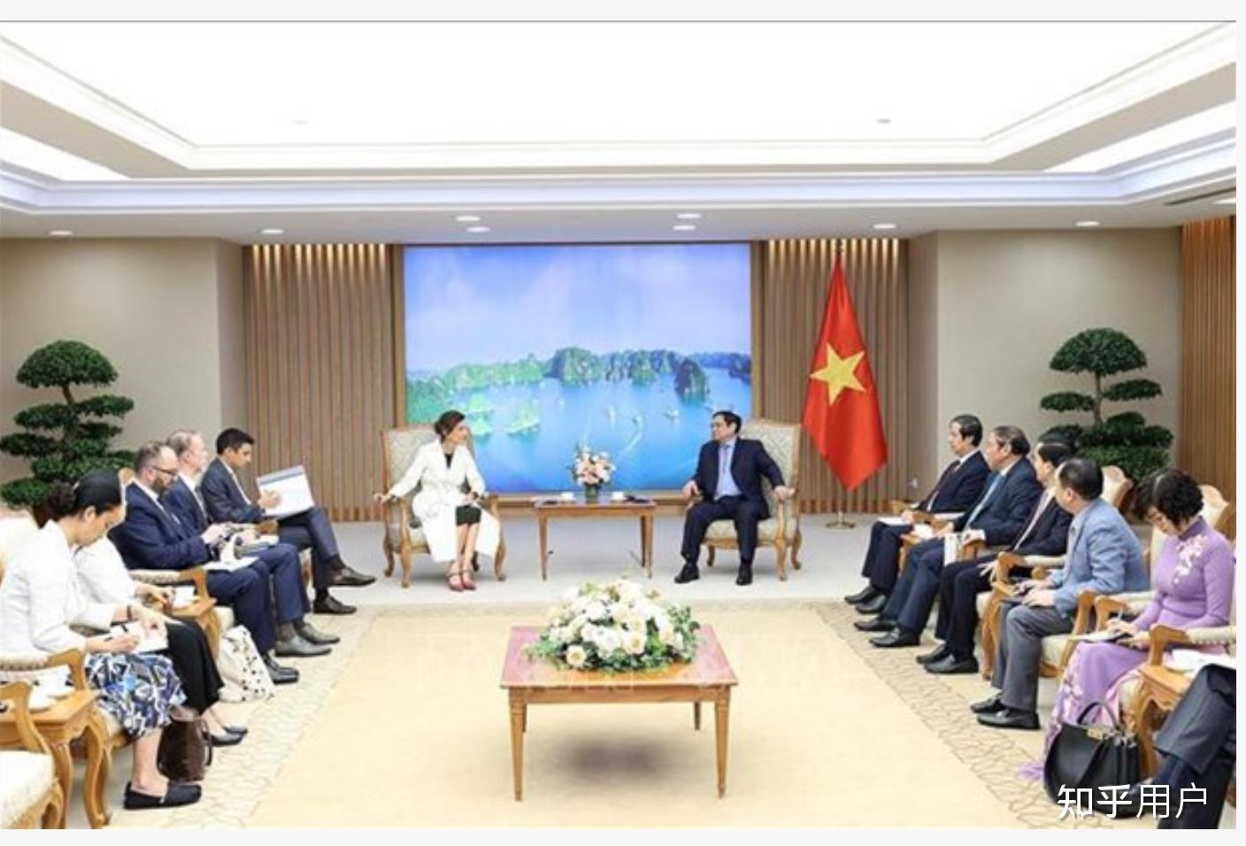 以下是越南国家总理范明政在相同会客厅会见其他国家高级别领导人的照片,图来自于越通社或者越南外交部