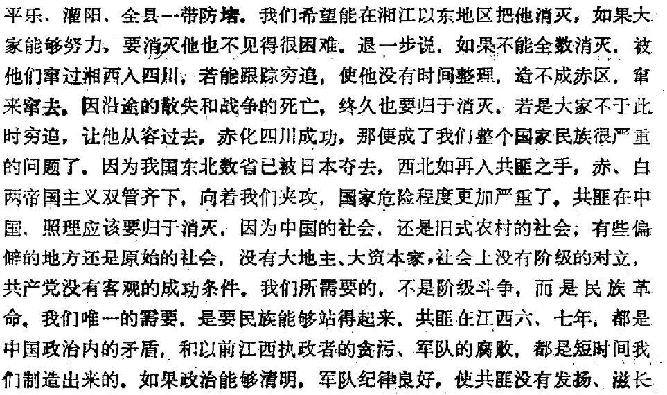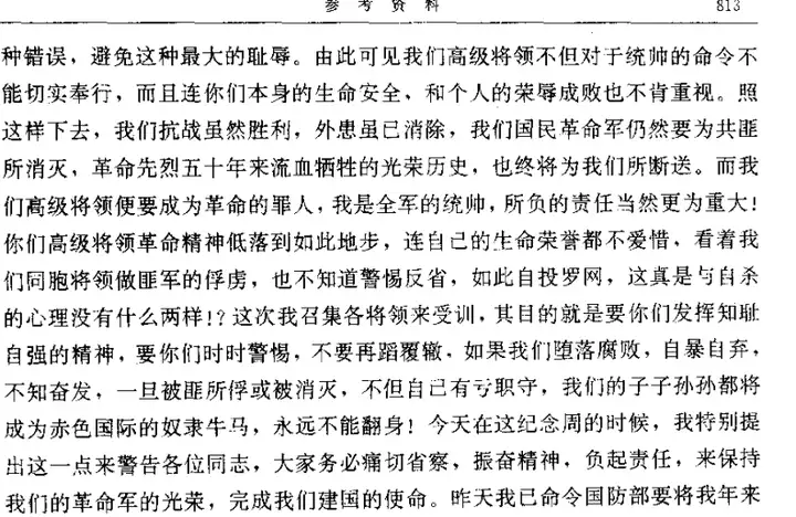 《蒋介石在国民党军军官训练团与绥靖区县行政干部训练班联合纪念周上的讲话》1947年4月20日 载于《解放战争战略防御•综述、大事记、重要战役简介、表册 》 而早在十余年前,蒋介石这个大卖国贼,同他那个当时还未暴露汉奸本性的“党圣人”汪精卫,就为保其自身统治地位,发布过一大通保卫国民党独裁政权的胡言乱语。