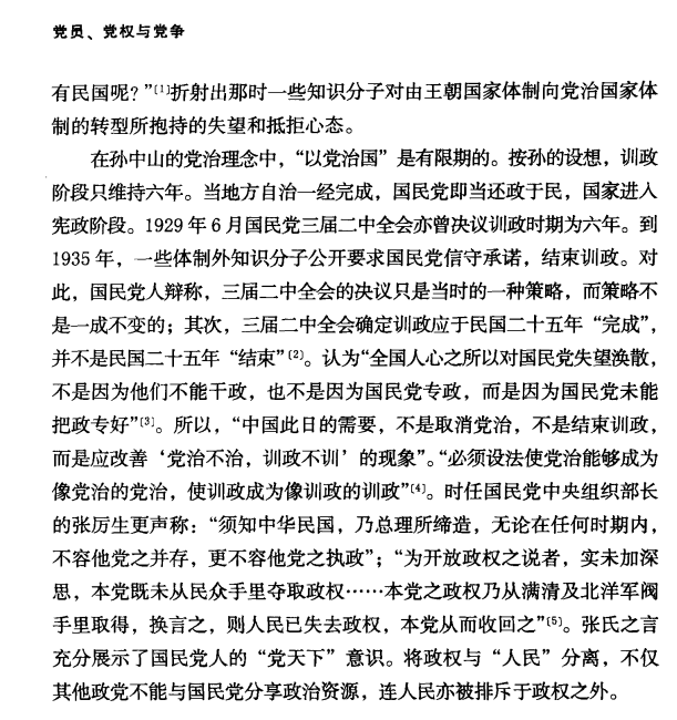 王奇生《党员、党权与党争:1924~1949年中国国民党的组织形态》第197页如若说1936年汪精卫的“坐江山”之论还有几分“霸气”的话,那么一年前国民党为维护其独裁统治而放出的发言就更是荒唐可笑了。