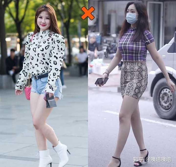 胸部过于丰满的女生原本上半身的量感就比较大,若是配合上高领口的衣服,便会让脖子到胸部的这部分空间变得更加拥挤,鲜明招摇地暴露胸大显胖的问题。大胸女生正确的穿搭思路应当是舒缓胸部的压力,将视觉重心向旁边转移,而高领口的上衣无疑是将胸部矛盾点激化,显得上半身又胖又壮,看上图示范就知道这么穿有多糟糕了。