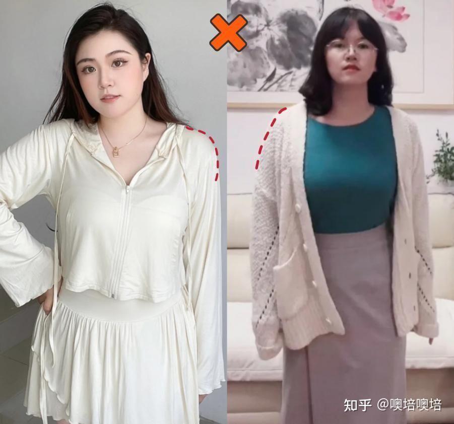 大胸女生往往都会伴随着肩膀厚、胳膊粗、斜方肌大等问题,而落肩款式于面料软塌的衣服对这缺陷位置没有任何修饰作用,而且还会起到增强上半身量感的作用,让整个人看上去更加臃肿壮硕,虎背熊腰就是这么穿出来的。大胸女生应当选择合身剪裁微微收肩的衣服,强化肩部线条,视觉上营造立体感,让穿着者看起来更加精神干练。