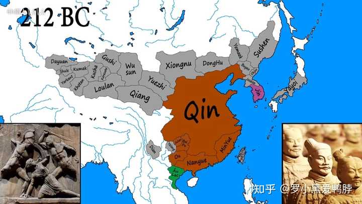 秦朝(212BC)版图 秦朝时期,汉人统一进度已经达到100%,完全可以认为天下汉人属于一个民族——汉族了。