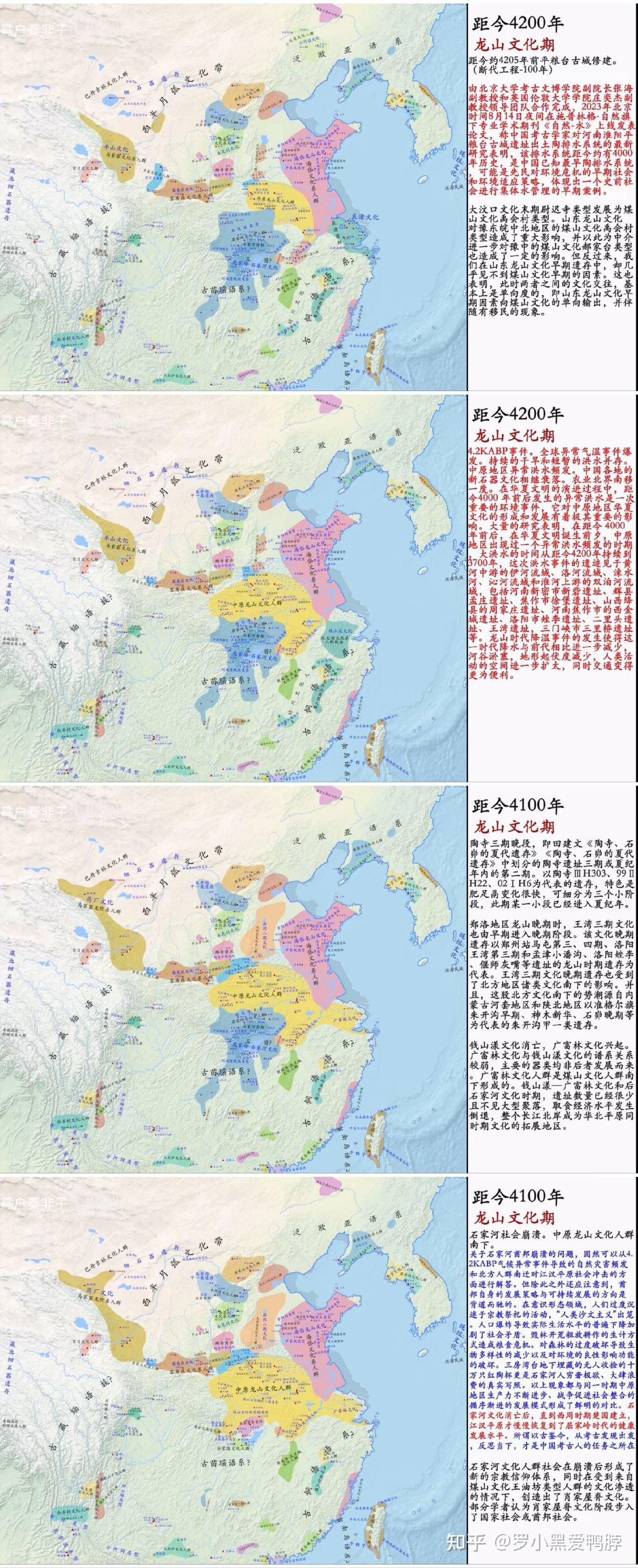 距今4200-4100年前的古中国 4200-4100年前,长江中下游地区的石家河文化、良渚文化等古文化在气候变化、洪水灾害的影响下,逐渐式微。