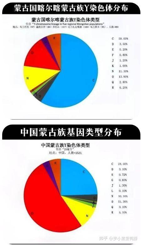 蒙古国喀尔喀蒙古族和中国蒙古族的Y染色体构成对比 今天中国的蒙古族,有不少Y染色体成分相比蒙古国喀尔喀蒙古族而言,已经明显接近汉族。