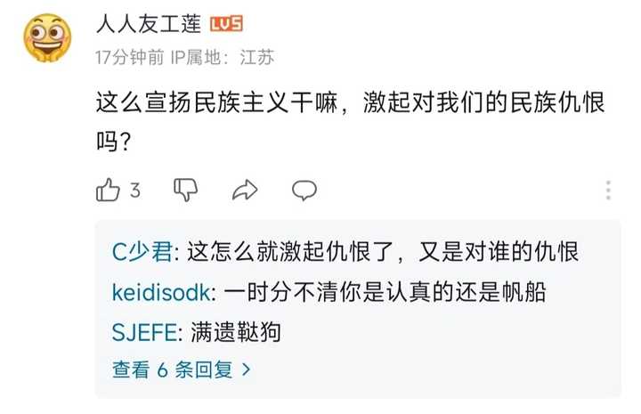 越来越多的汉族,开始主动回击这类逆民言论的PUA,开始更自信的表达民族认同。这本身证明了共和国已经步入正轨。只是在长期的舆论氛围惯性下,很多人还不太适应