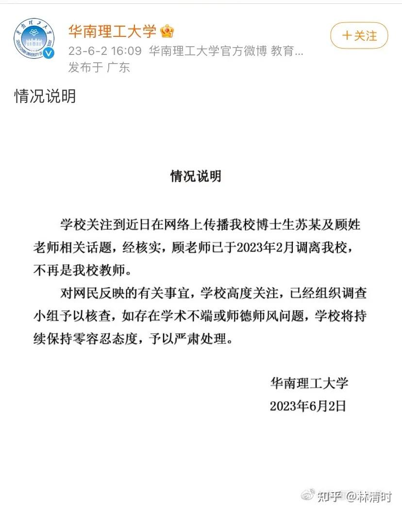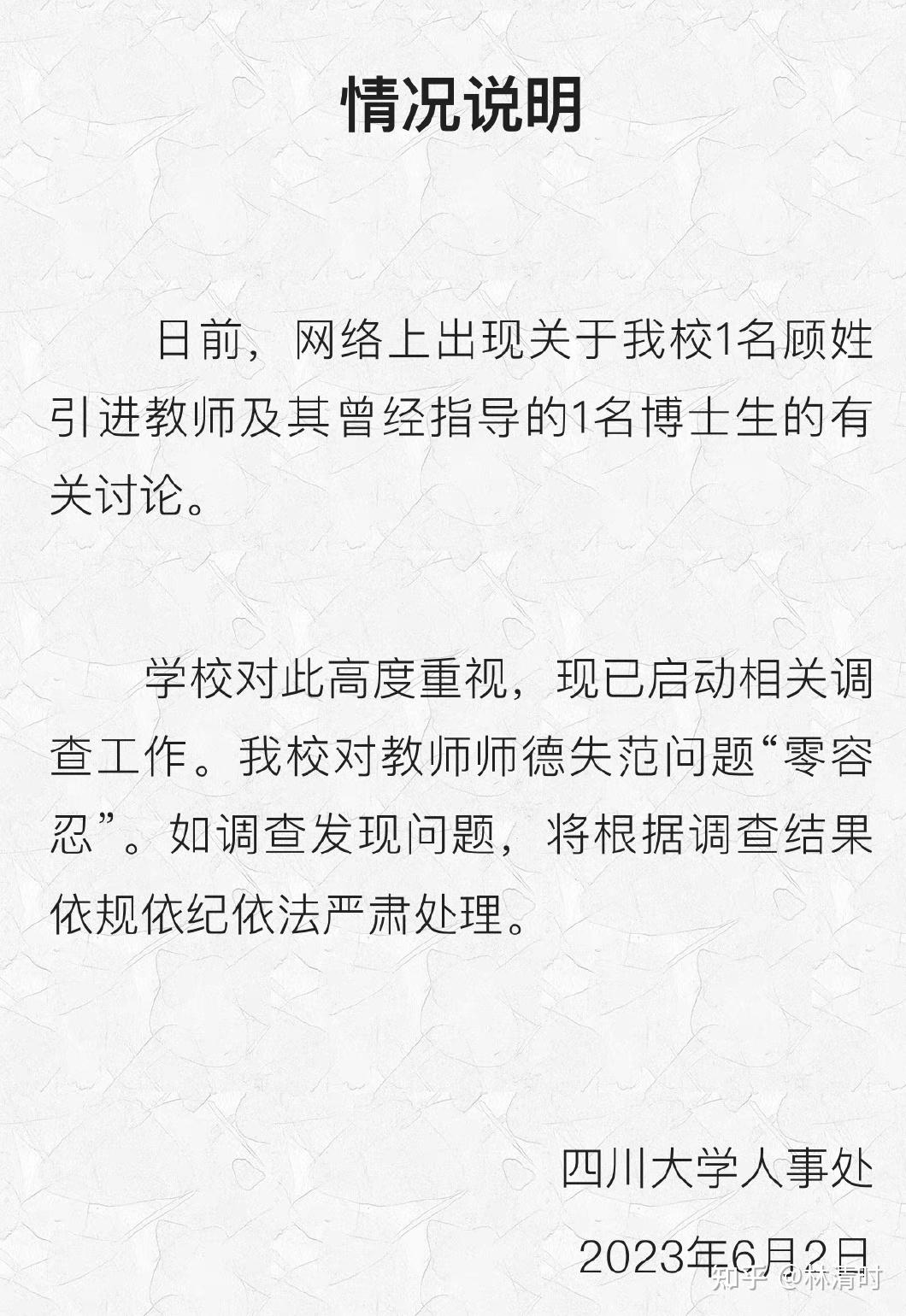 目前华工以及川大都已经回应了。华工回应:顾老师已离职,川大则是发布声明:苏博士并未正式入职。双方目前都有切割的嫌疑,咱们路人也只能静待后续了。