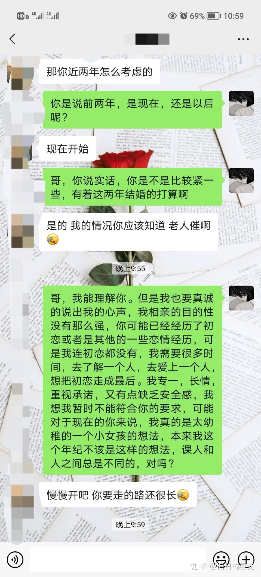 朋友们,下面是我前几天第一次相亲时的遇到的问题,大家可以帮我看看,从我的字里行间看,我真的是一个太虚浮的人吗?是不是在这个现实世界里,所有的男生都是这样考虑的。我真的又害怕了。要不是父母以死相逼,我也不会去相亲,不是不向往爱情,实在是太难能可贵,我又宁缺毋滥,我问题是不是很大?还真挺难受的