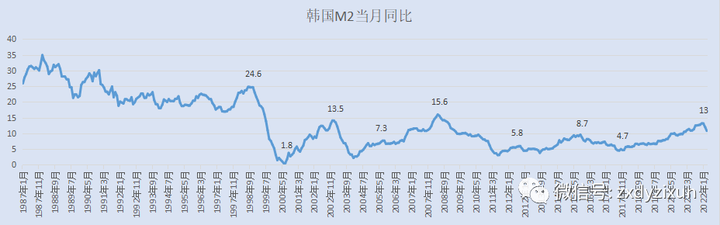 2000-2008年欧洲M2增速持续上升,从4%上升至11.68%,次贷危机前美国M2增速长期保持在5.33%-9.4%,2021-2023年国内M2增速从8.3%上升至12.7%。2017-2021年韩国M2从4.7%上升至12.93%,2022年初至2023年初,韩国M2增速从12.93%回落至3.97%,这也导致韩国楼市价格迅速见顶,公寓市场开始下跌。