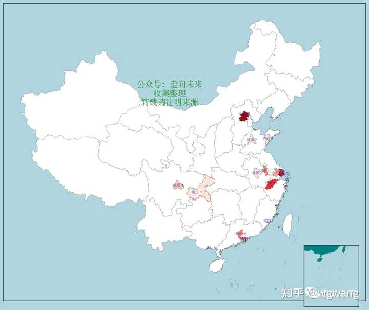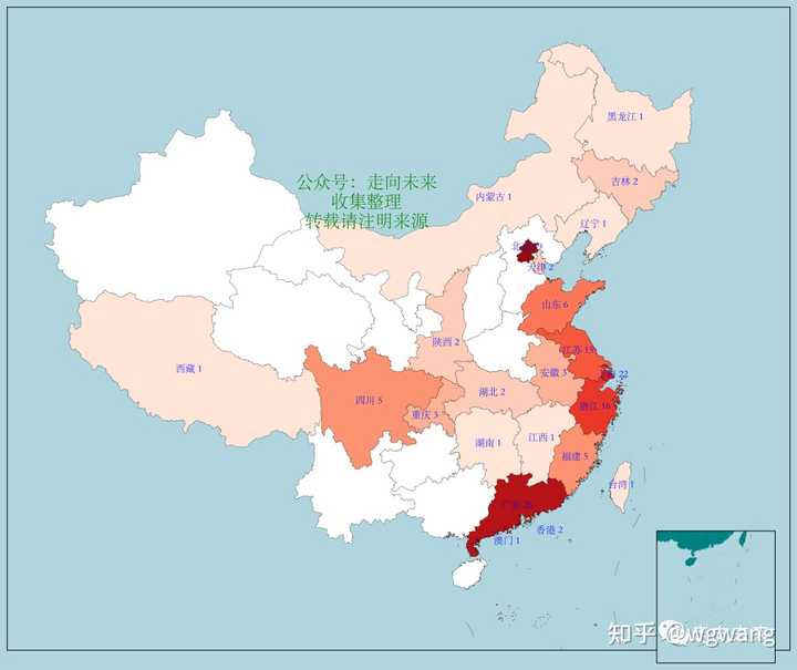 在这188个大模型中,按省份进行统计,并用地图可视化出来,如下图所示,可以清楚地看出,祖国山河几乎一片红,特别是东部沿海地区的省市都有机构发布了大模型。按省级单位来说,这188个大模型分布于23个省级单位(包括自治区、直辖市和特别行政区)。