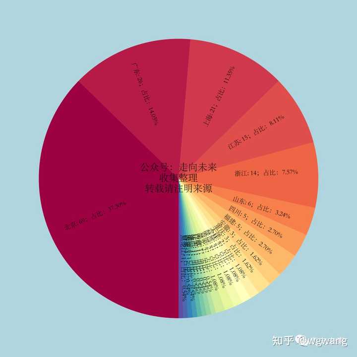 序号 省级单位 大模型个数 1 北京 69 2 广东 26 3 上海 22 4 浙江 16 5 江苏 15 6 山东 6 7 四川 5 8 福建 5 9 安徽 3 10 重庆 3 各个省级区划的占比如下面饼图所示。下图可以清楚地看出,北京遥遥领先,占比近37%,广东、上海、浙江和江苏紧随其后。这跟大家对人工智能行业的传统认知也是十分接近的。