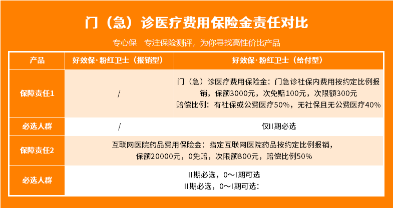 只有在门(急)诊医疗费用保险金责任上,二者稍有不同:
