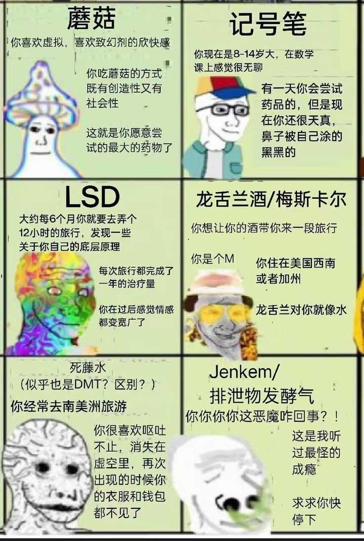 5 低成瘾性毒品,比如飞叶子,气球等等。成瘾性低,飞叶子有一定的致幻性,笑气也是那种窒息般的短暂快感。我国笑气貌似不算毒品,美国很多州飞叶子不算毒品。