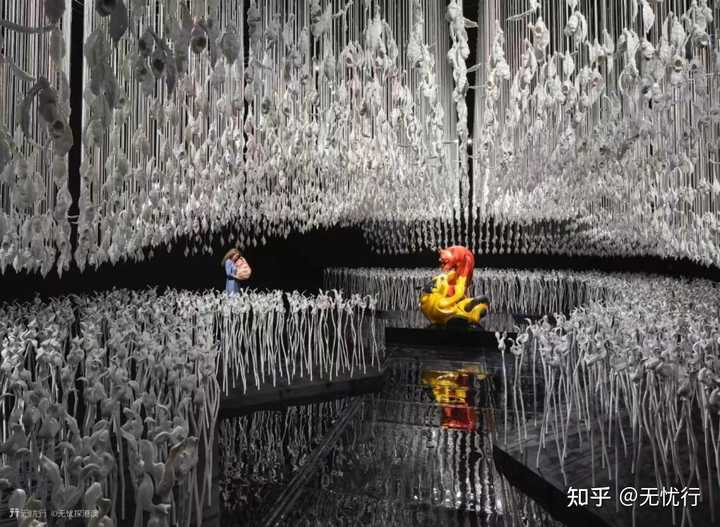 图源:网络 这些雕塑艺术品十分逼真,有长着蝙蝠鼻子的婴儿、面庞像老人的海龟、拥抱人类的驼背海豚人等。三楼还有一个巨型装置—天野,4500株花径,或从天或从地绽开,置身其中,何其震撼。