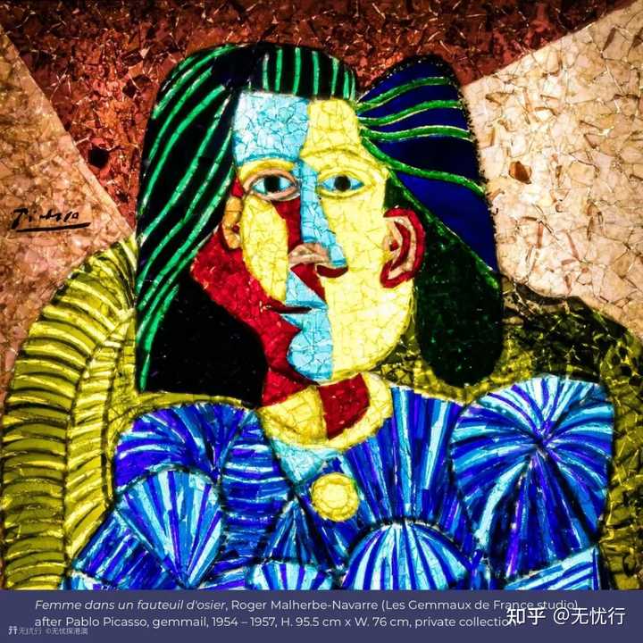 图源:香港艺术展览 毕加索与法国艺术家罗杰.马莱伯﹣纳瓦尔的工作室合作,利用组合、层叠和黏贴彩色玻璃片的方式,将其部分代表性画作转化为玻璃画,并配合光线投射重新演绎画作。当不同的光线透过玻璃发出五彩斑斓的色彩时,剔透而立体,瑰丽且迷人,每一幅都值得细细观摩欣赏!