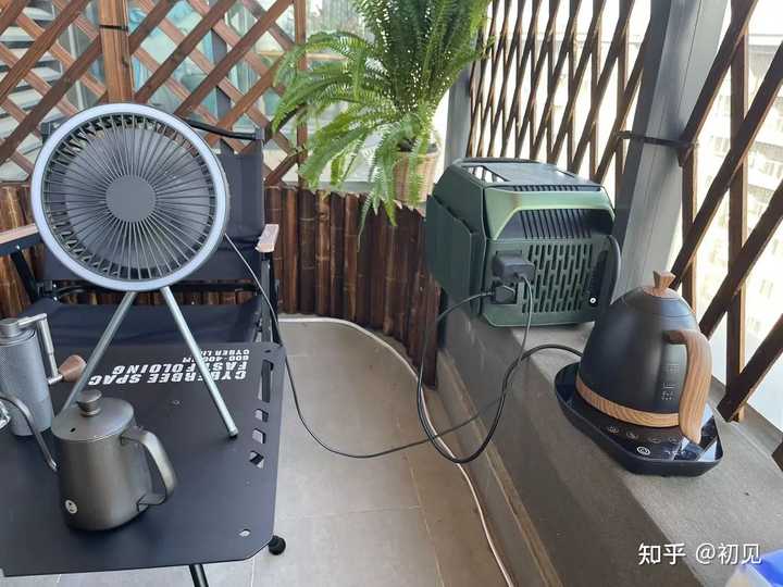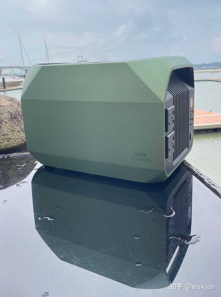 外壳是铝合金,金属冰凉凉的手感,折弯的工艺细节做的很好,这造型外观应该是市场独一份了,当初选择这个新品牌也是为了这颜值 绿色电源跟我的小推车很搭 这款额定功率1200W,可升维至2000W,输出口有AC*2、USB-A*2、USB-C*2、车充、DC接口和无线充 随便摆放,随便拍都很好看 15W无线快充这个功能是真的赞,出门不用带充电线了,而且独立开关设计,也是非常贴心了 在这一个月的使用体验下来看,高能侠户外电源除了外观颜值高,性能也是很能打的,充电只需要一个半小时充满,也就是吃个饭的时间不耽误,整体还是很满意的,会推荐给朋友