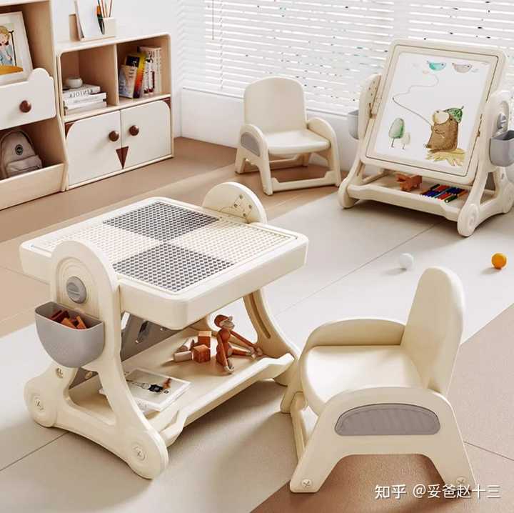 2岁左右,可入多功能积木桌 当需要大尺寸桌子时候,宝宝差不多在6周岁(幼小衔接),那个时候为了宝宝的使用体验和身体发育,建议直接买个功能更全、桌子和椅子都可以调节高度的学习桌。