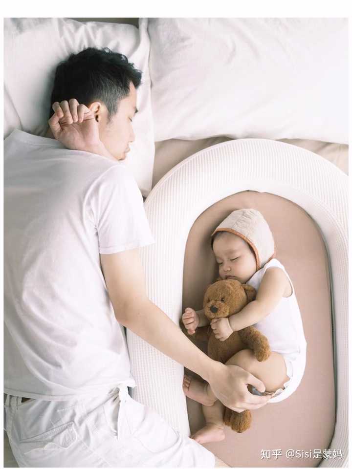 原来我担心他睡的太死,压到孩子,结果婴儿床跟大床之间有个可调节的柱子,孩子在里面,他在外面,我们实验了一下,不会压到孩子。