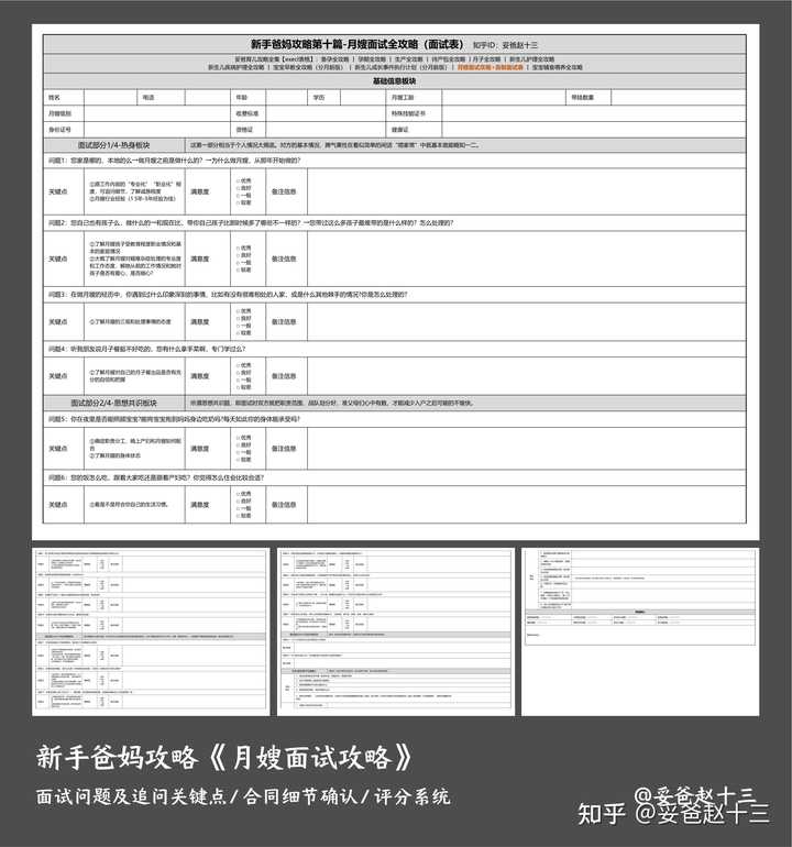 包括月嫂职能了解、如何避坑、面试攻略、面试表等