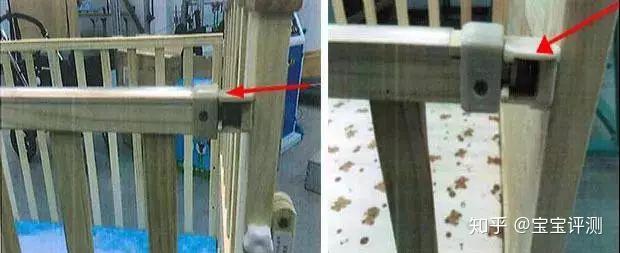 2、 有些婴儿床为了使用方便,会将旁板设计成可以下放,侧翻旁板在提起时是可以自动啮合的,但若侧翻旁板提起时无法自动啮合,可能导致侧板意外打开,存在婴幼儿意外跌落风险。