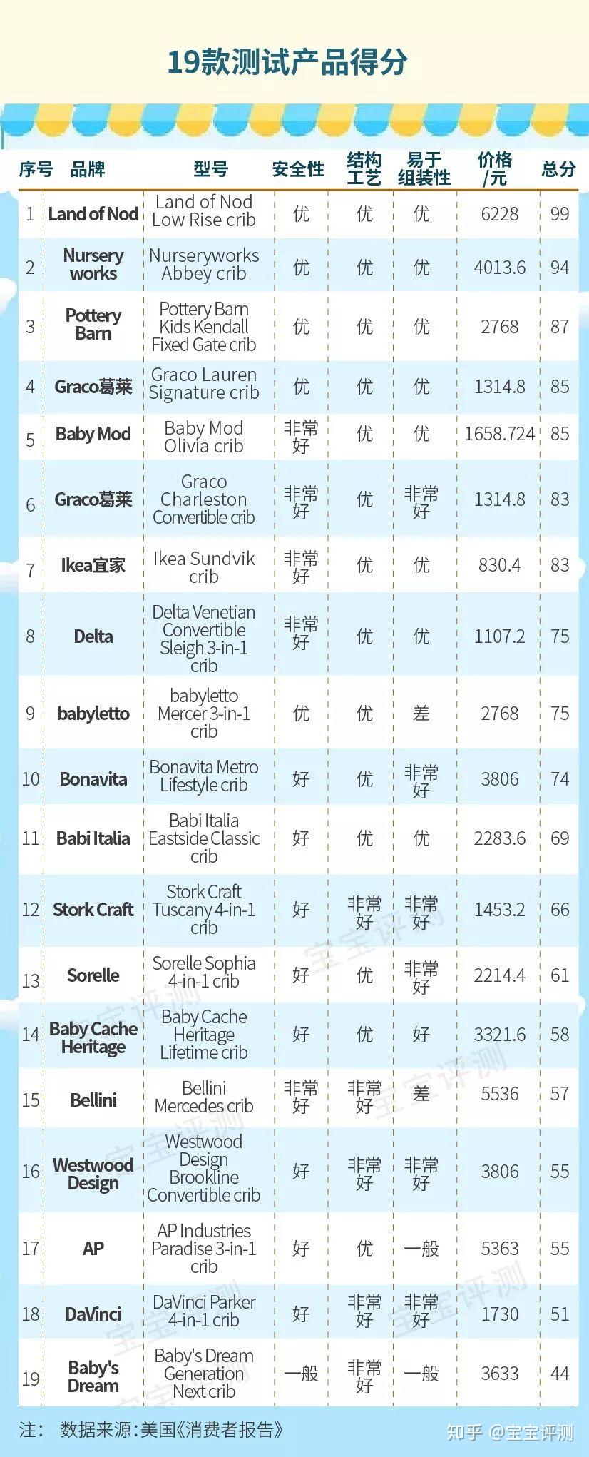 世界知名的第三方检测组织——美国《消费者报告》,2016年也曾对19款婴儿床进行了对比测评。测试项目包括使用安全性、结构工艺(包括使用的硬件类型、质量缺陷等)、易于组装性等内容。