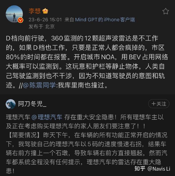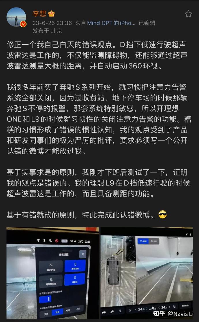 李想先是在微博怼了车主,说低速D档雷达不工作。