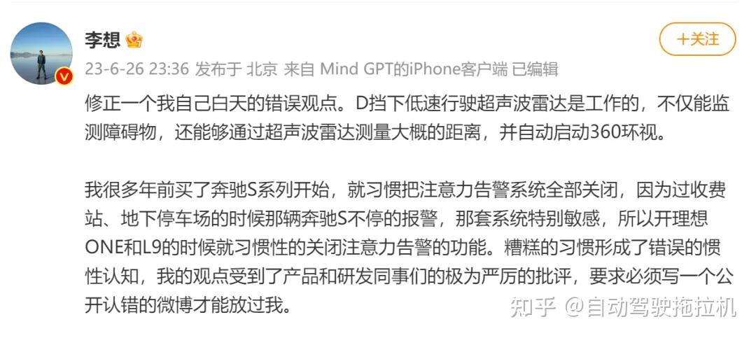 但是绝口不提客户的车载雷达为什么不工作,理想的车是不是存在隐患,而认错也仅仅是因为自己“观点错了”,而不是因为产品缺陷给客户造成了损失。