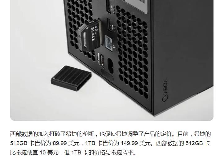 再就是,XSX游戏机被玩家骂的一点就是扩容外存太贵,扩容1TB都要近一千块,人家PS5现在扩容到4TB外存都不用1000块了。