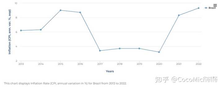 巴西2013年到2023年十年的通货膨胀CPI消费者价格指数的图表 发布于 2023-06-27 09:38・IP 属地澳大利亚查看全文>>
