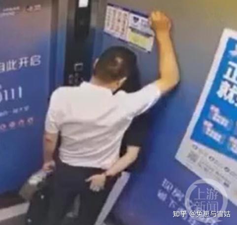 并且以壁咚的姿势将女子逼到了电梯墙上,而女子也主动回应,将手放到了杨书记的屁股上。