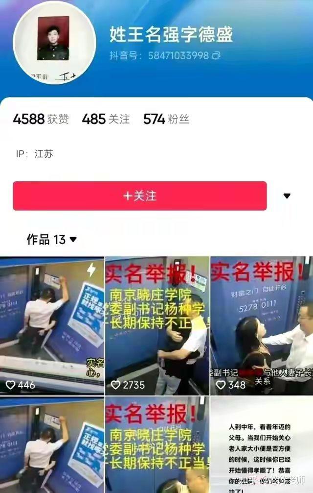 6月26日,有人发布了一则视频,举报南京晓庄学院副书记出轨他人妻子。