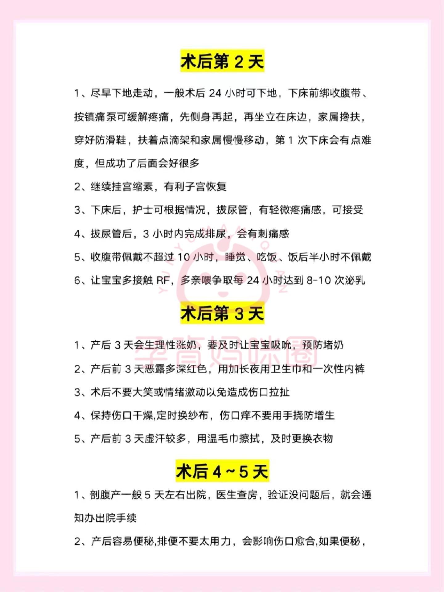 剖腹产出手术室后比顺产更难受一些,需要静躺、挂缩宫素、压肚子等各种程序,得在床上多躺几天恢复。