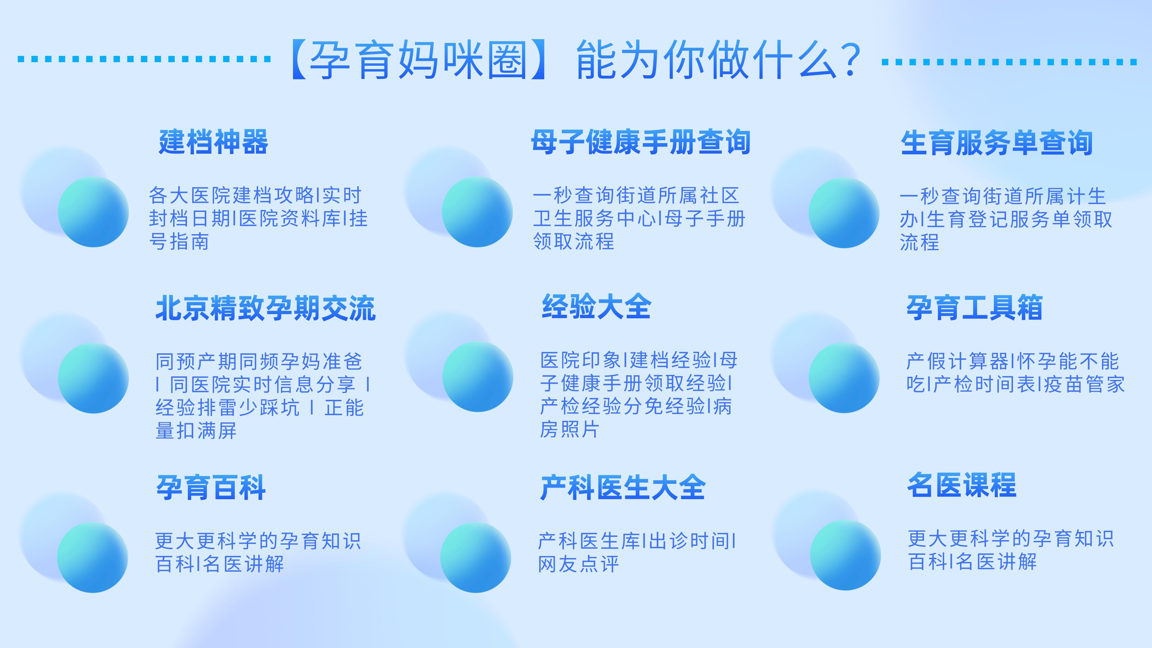 怀孕了,就关注微信公众号【孕育妈咪圈】,惊喜不断~有母子健康手册&生育登记服务单一键查询小神器,各大医院建档、产检、分娩攻略、病房照片、产检住院花费、生育险生育津贴领取攻略以及过来孕妈们的医院&医生评价、建档、产检、分娩经验应有尽有!