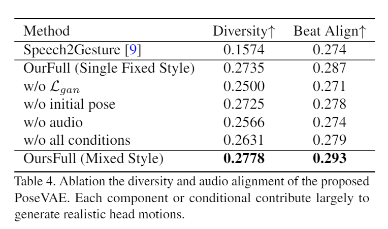 这是PoseVAE做的消融实验,可以发现比baseline是好很多的,几乎每一种方法都比baseline的多样性更高。