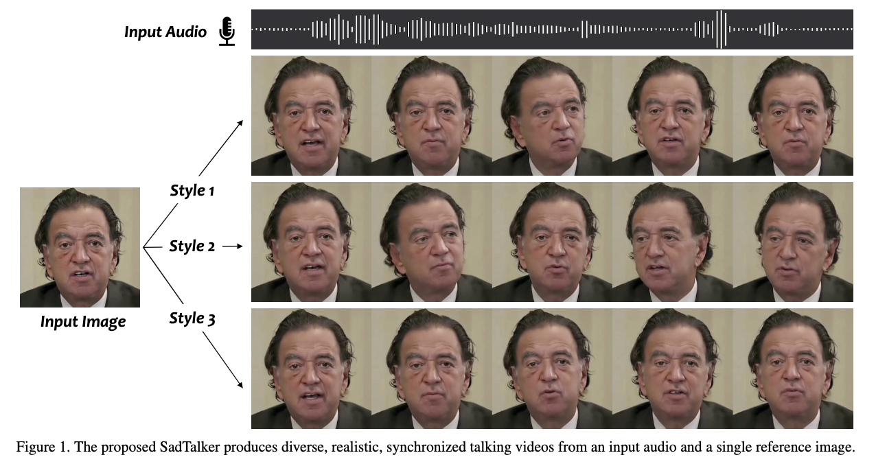 论文: 《SadTalker: Learning Realistic 3D Motion Coefficients for Stylized Audio-Driven Single Image Talking Face Animation》 github: https://github.com/Winfredy/SadTalker