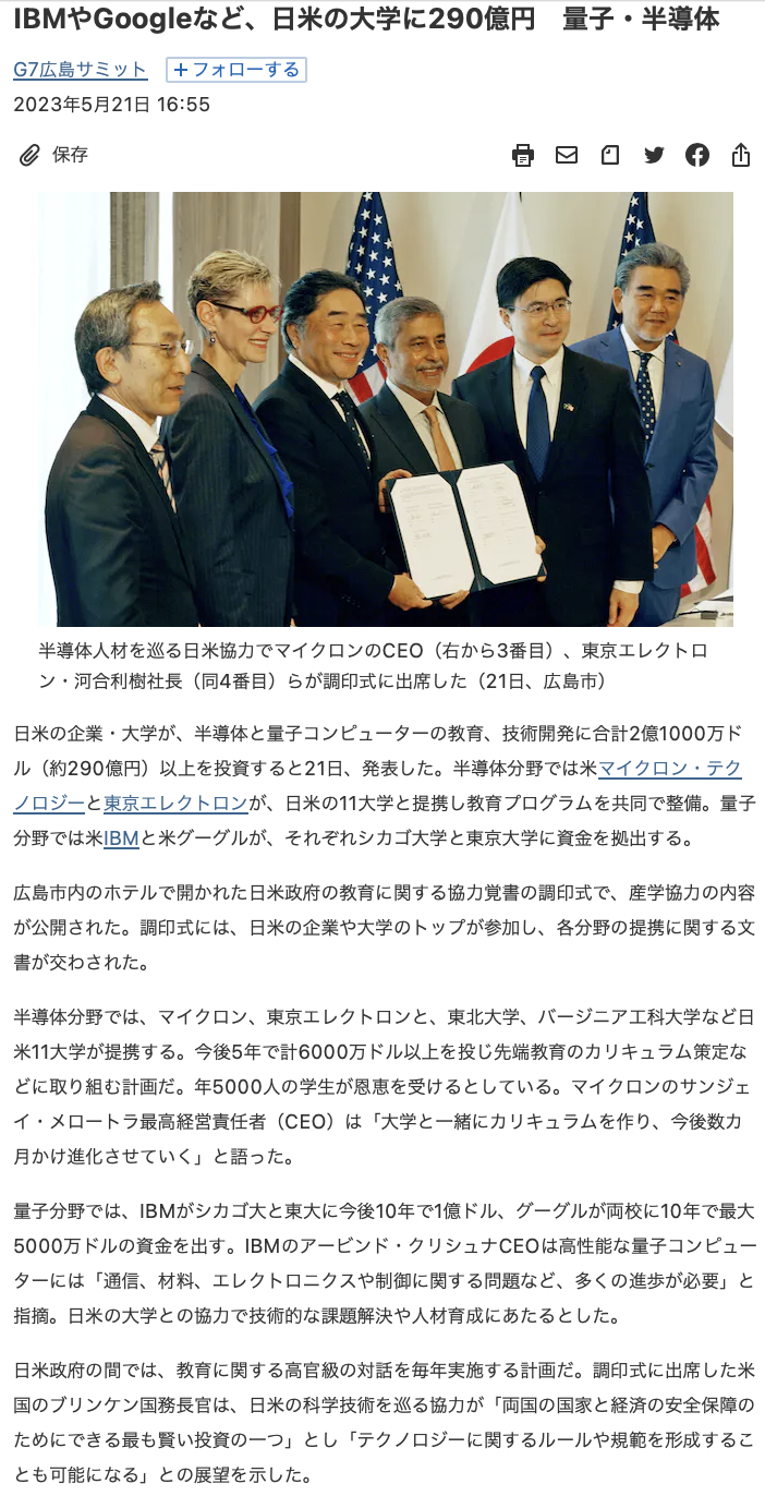 2020年8月30日,巴菲特对5家商社的持股就超过5%,此后数次追加。明显巴菲特是在至少3年前就开始投资日本布局了。 全世界半导体大企业都聚焦日本,准备在日本共同投资,这种事情多少年没见过了。 整个2023年度下半年,日本几乎是全世界资本的注目焦点,当中美对抗已经成为大家的共识,资本肯定要找一个安静适合的投资环境。日本是成熟的经济国家,各种制造业先进,基础建设完善,人才培养机制也不缺,唯一的问题是缺人。但这个没关系,提高工资招人就是,从美国来看,日本人工算很便宜了。所以才有了前面日本近30年最高的工资涨幅。也带动了资本对人才的投资,IBM和谷歌等半导体企业发起一项对日本和美国大学的投资,IBM承诺今后10年内对芝加哥大学和东大投资1亿美元,谷歌承诺今后10年对两校投资5千万美元,其他企业也都有各自投资,估计接受投资的日美大学每年将有5千名学生可以拿到半导体研究的奖学金。