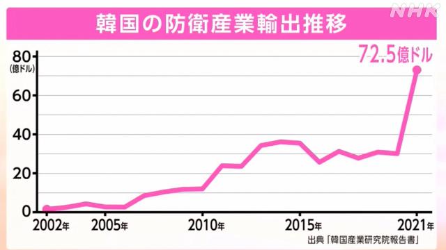 而在2022年里,韩国的武器出口增加了一倍不止,接近200亿美元。