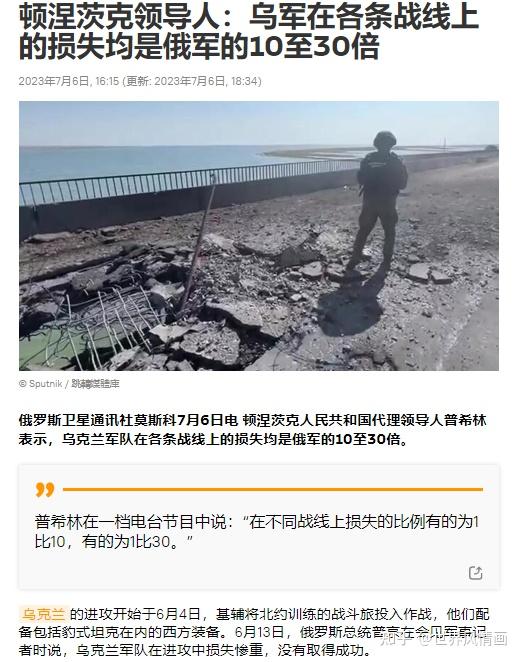 [2]顿涅茨克领导人:乌军在各条战线上的损失均是俄军的10至30倍(俄罗斯卫星通讯社:2023年7月6日)