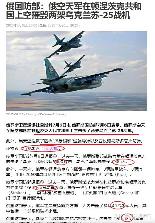 [4]俄国防部:俄空天军在顿涅茨克共和国上空摧毁两架乌克兰苏-25战机(俄罗斯卫星通讯社:2023年7月6日)