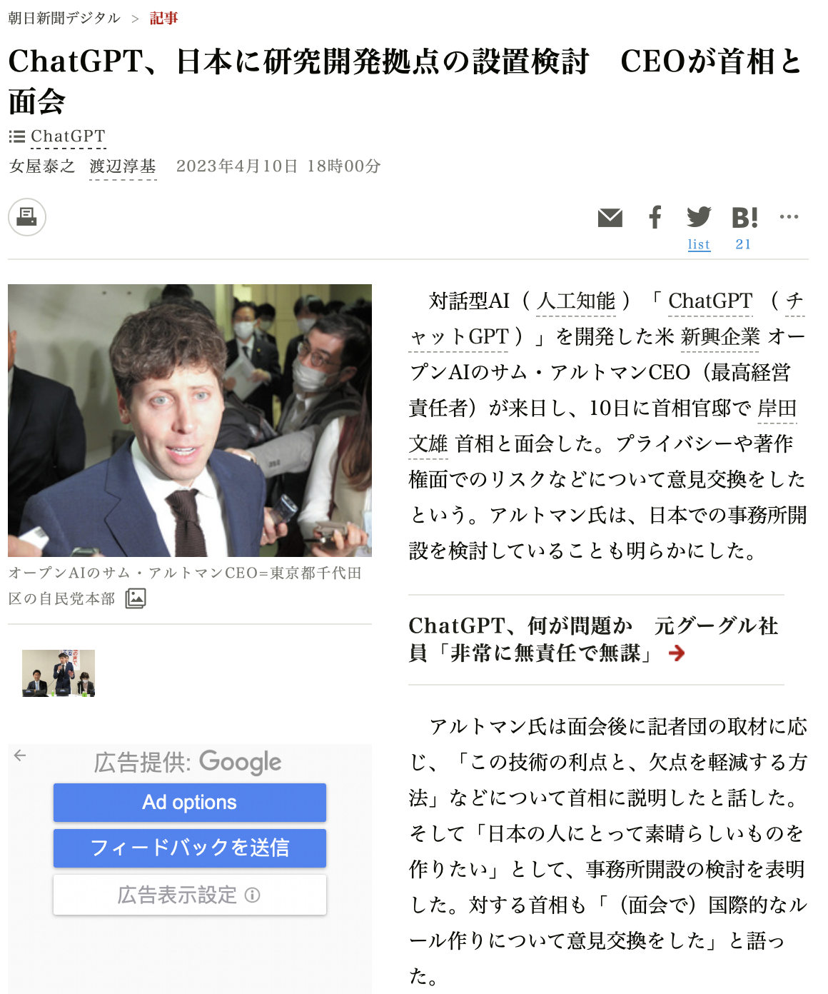 23年4月10日,现在正在热火朝天的OPENAI 公司CEO山姆阿尔特曼访问日本,和首相岸田文雄直接会谈,希望在日本开设研究开发基地。