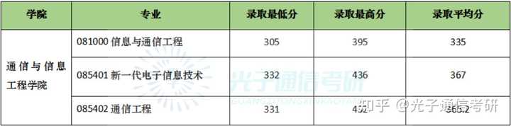 081000信息与通信工程,录取最低分305分,录取最高分395分,录取平均分335分