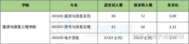 081001通信与信息系统,进复试人数88人,拟录取人数52人,复录比1.69