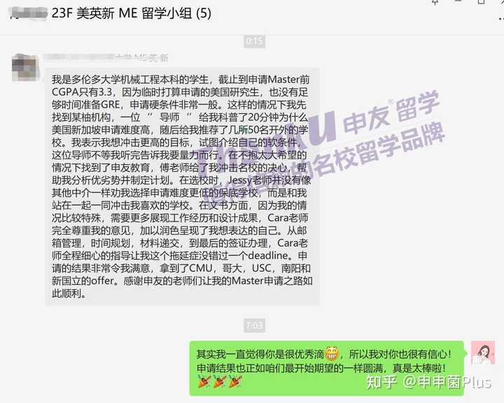 下面是申友留学23fall部分好评图: