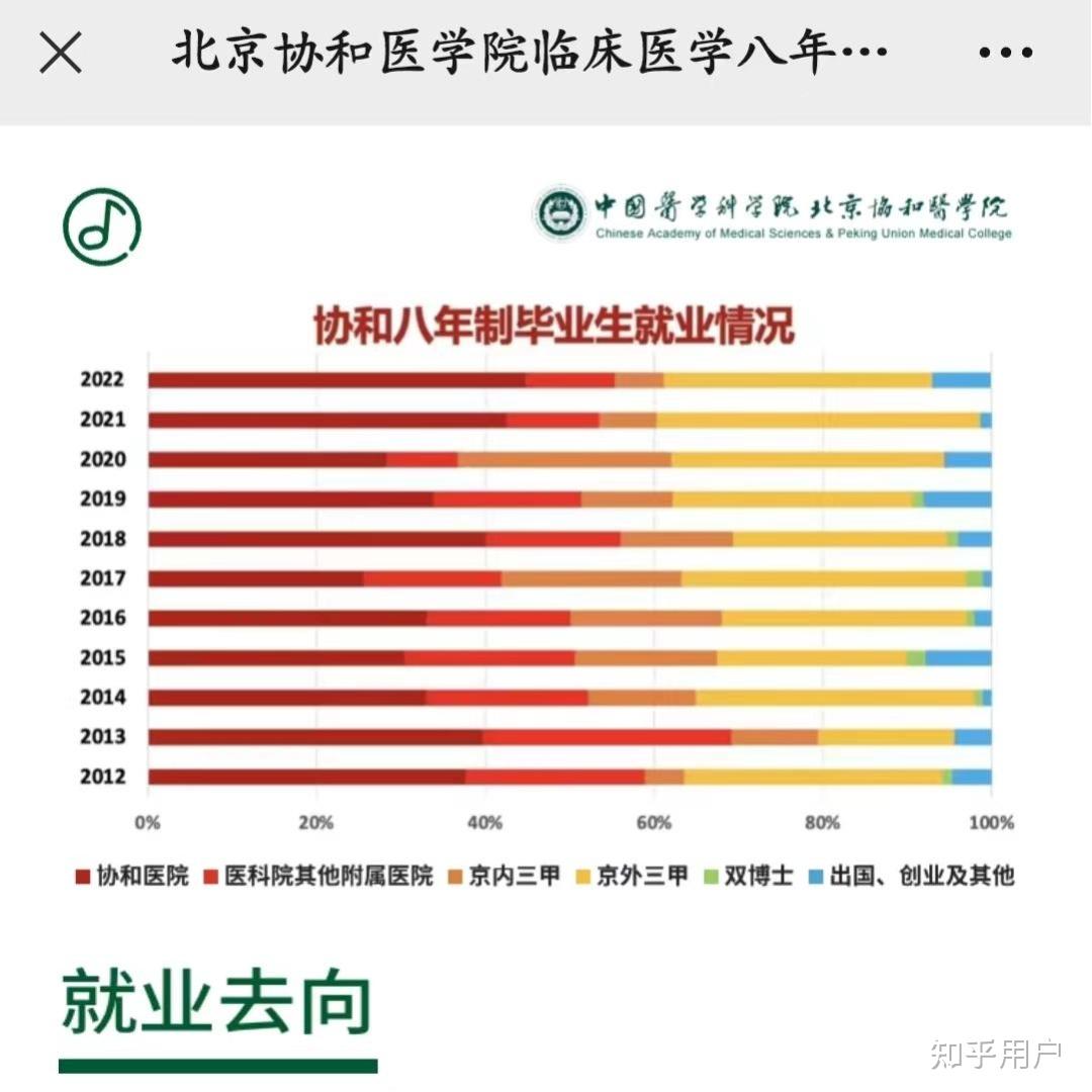 再来说就业。协和的话,课程设置、教务和培养计划会有些小坑,但是最终就业的时候协和的牌子还是比较硬的,就业情况相对稳定;