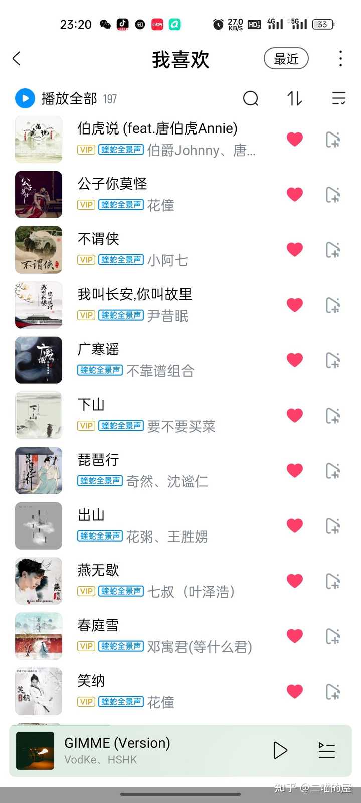 要说歌曲排行,今年主要是在酷狗,只要听到好听的都会加入喜欢的列表里面。