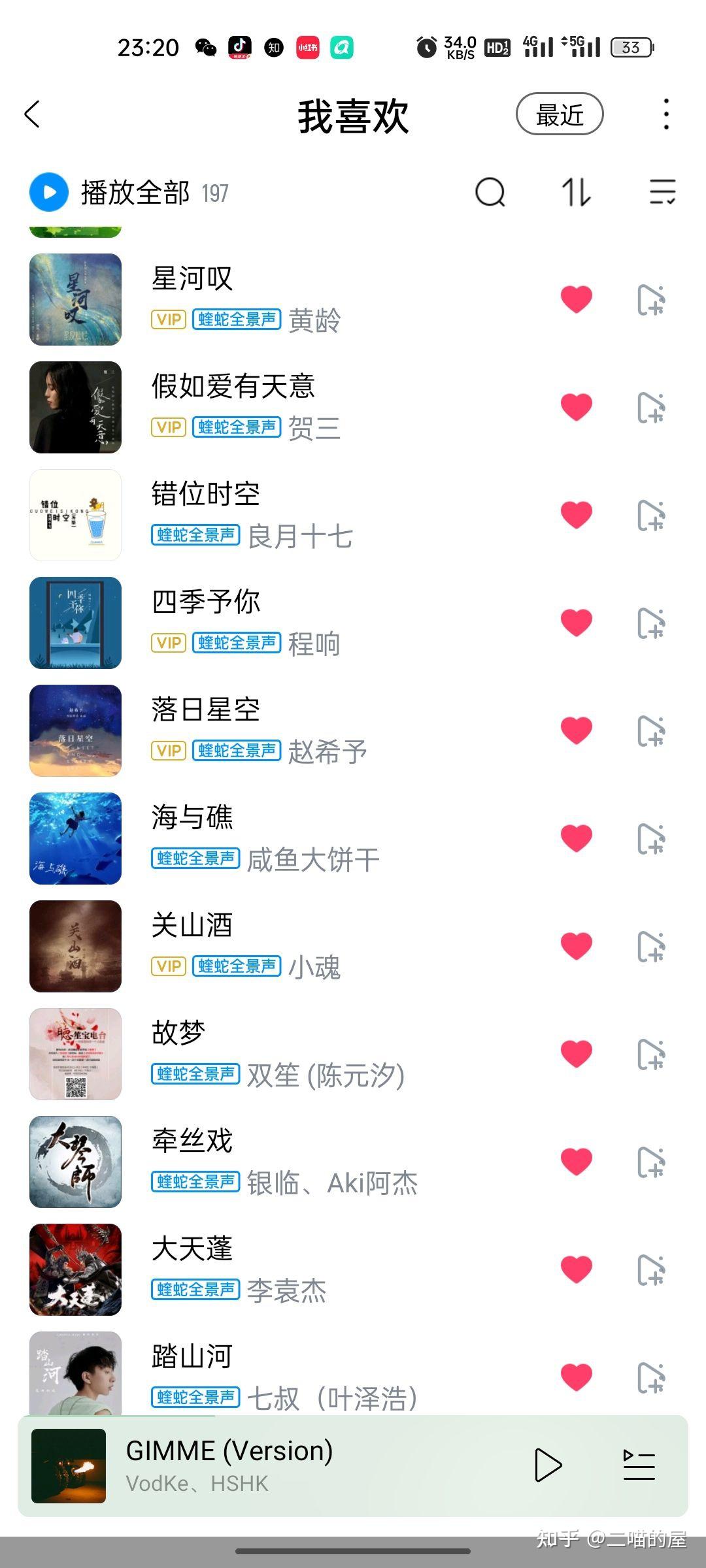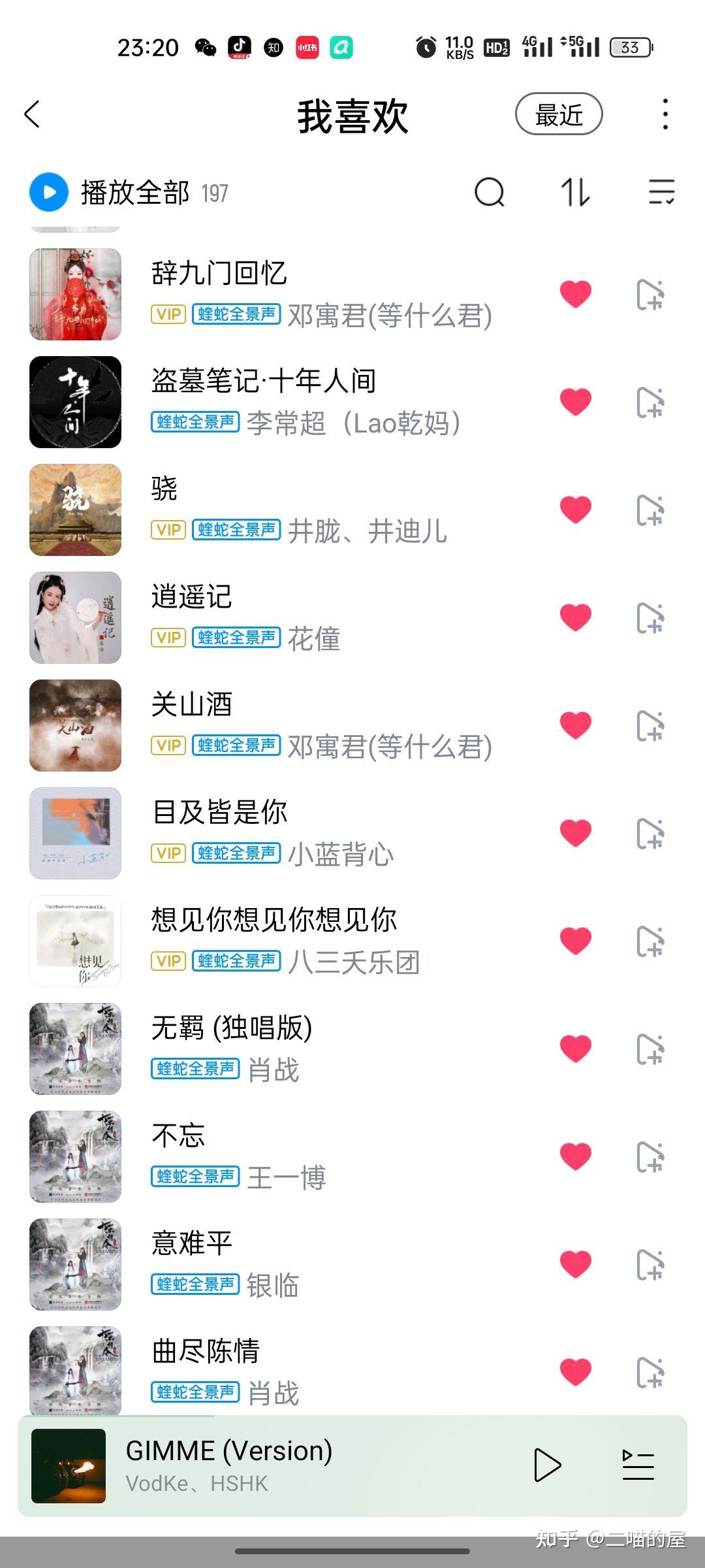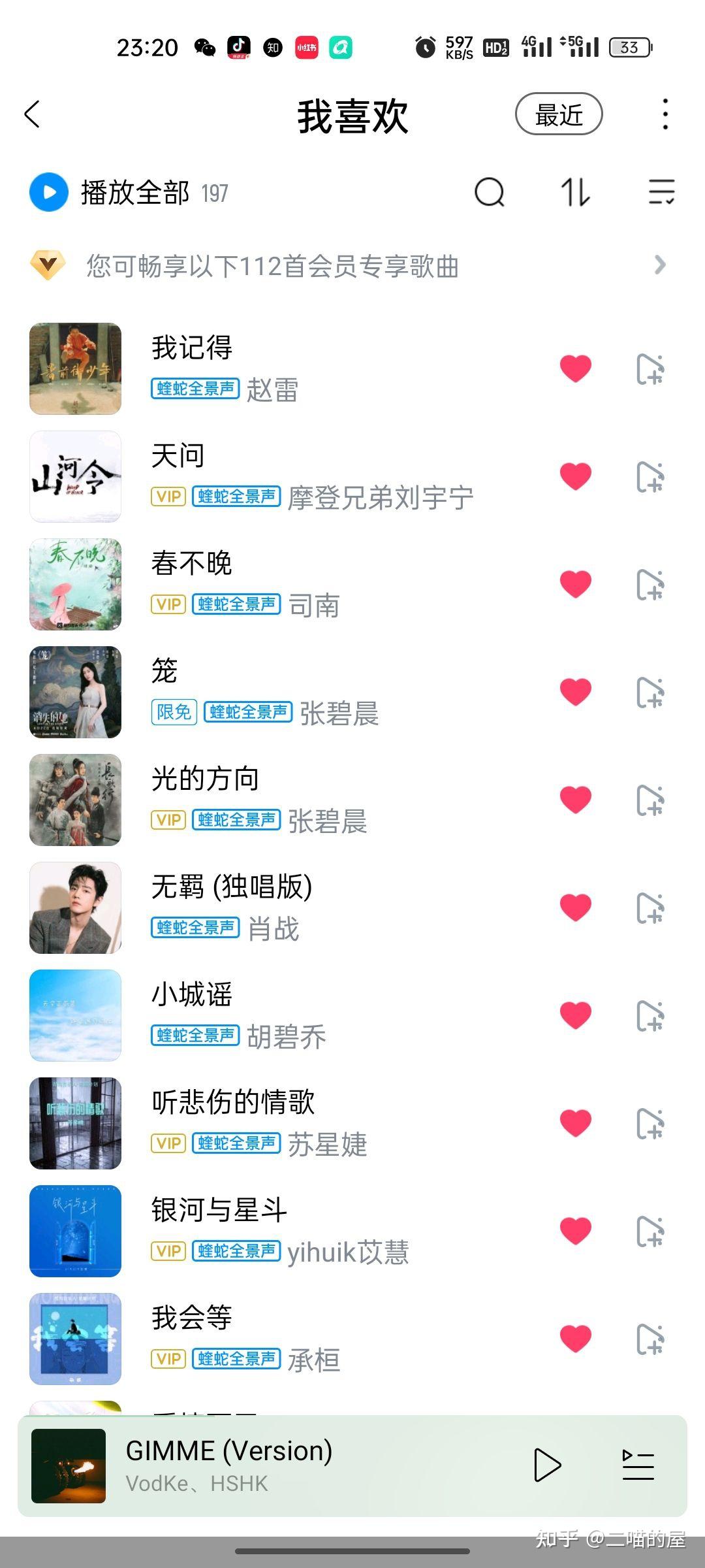 要说歌曲排行,今年主要是在酷狗,只要听到好听的都会加入喜欢的列表里面。