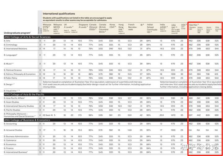 在高考满分为750分的省份,高考总分有525分就可以申请澳大利亚国立大学的商科、IT、人文社科类本科。