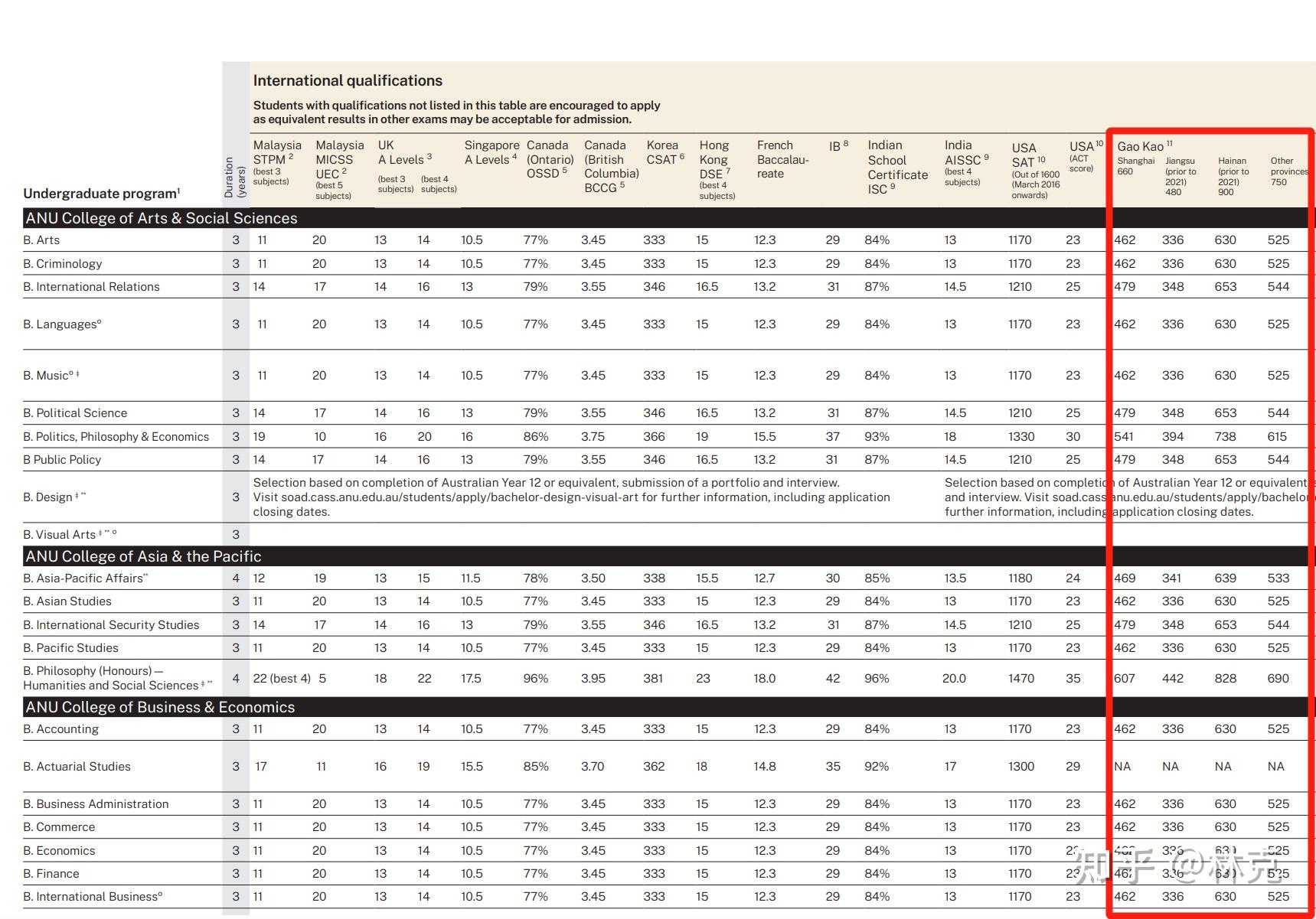 在高考满分为750分的省份,高考总分有525分就可以申请澳大利亚国立大学的商科、IT、人文社科类本科。